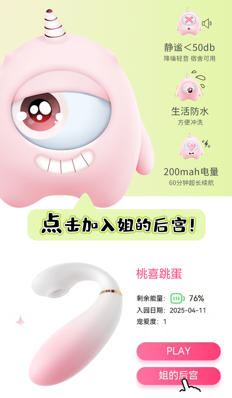 【女用器具】安可尼 桃喜吮吸震动APP遥控情趣跳蛋25.5.14详情新增ai男友 代发价38,零售价79