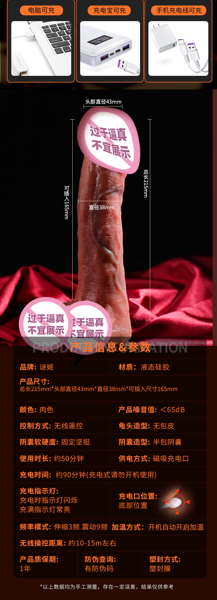 产品尺寸:总长215mm*头部直径43mm*直径38mm*可插入尺寸165mm