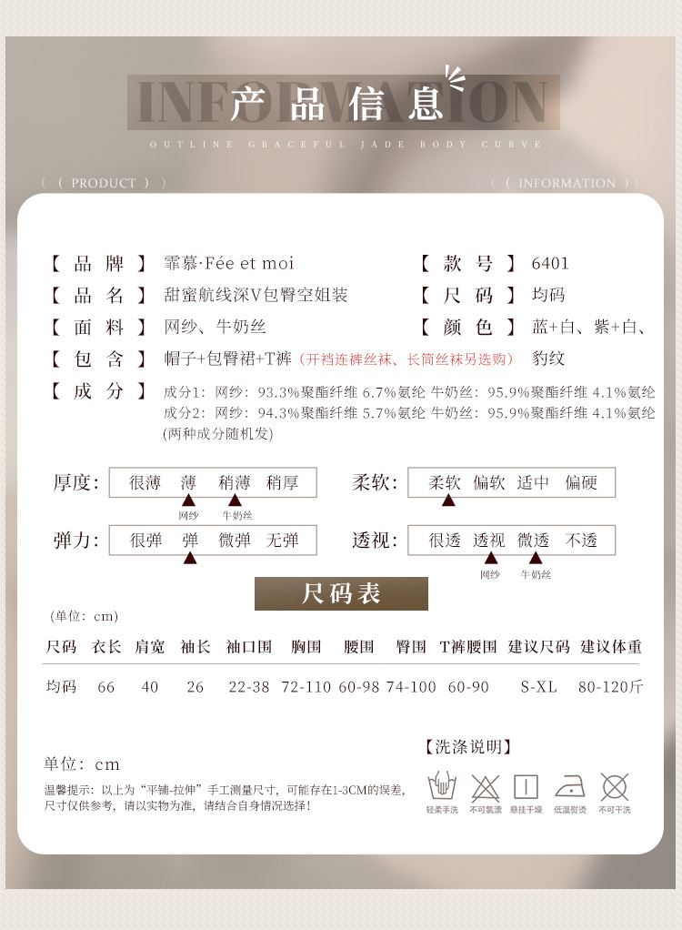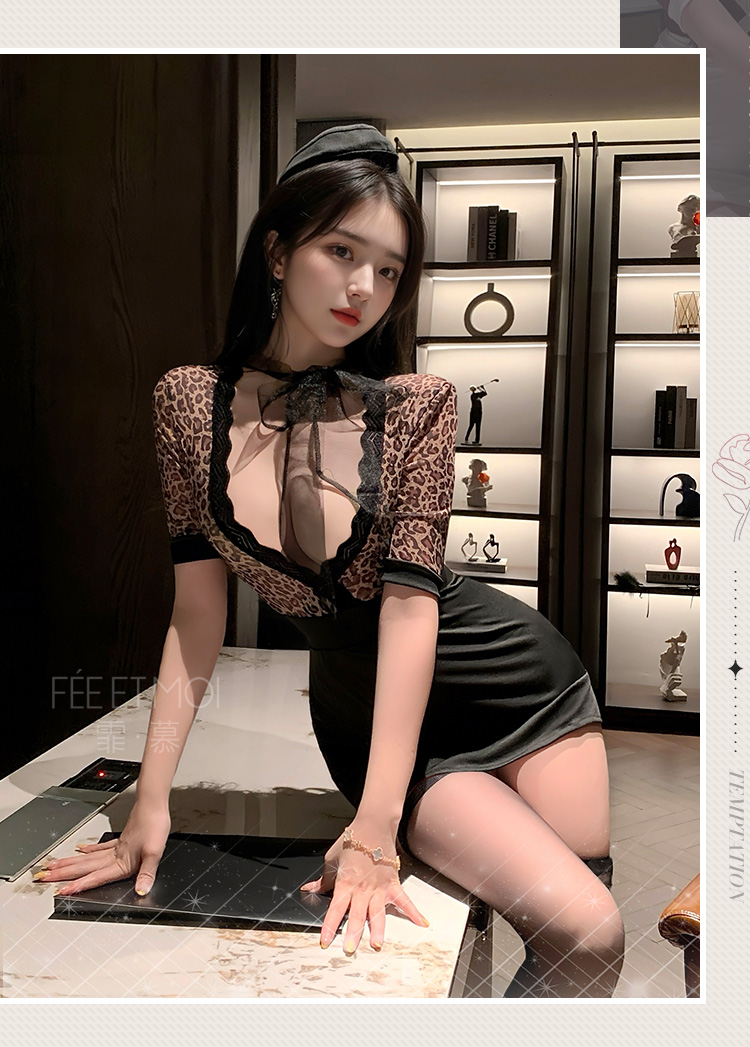 【情趣内衣】霏慕 甜蜜航线深V包臀空姐装640125.6.10新增紫白规格 25.8.14新增 豹纹+黑规格