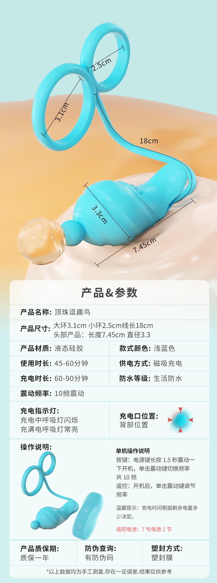【情趣用品】谜姬 顶珠逗趣鸟强震锁茎