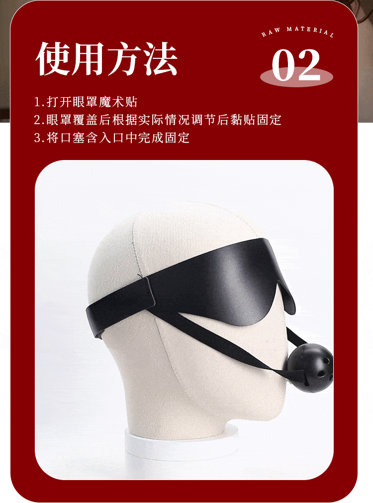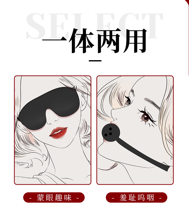 主要功能/卖点:眼罩口球一体 蒙眼堵嘴同步使用