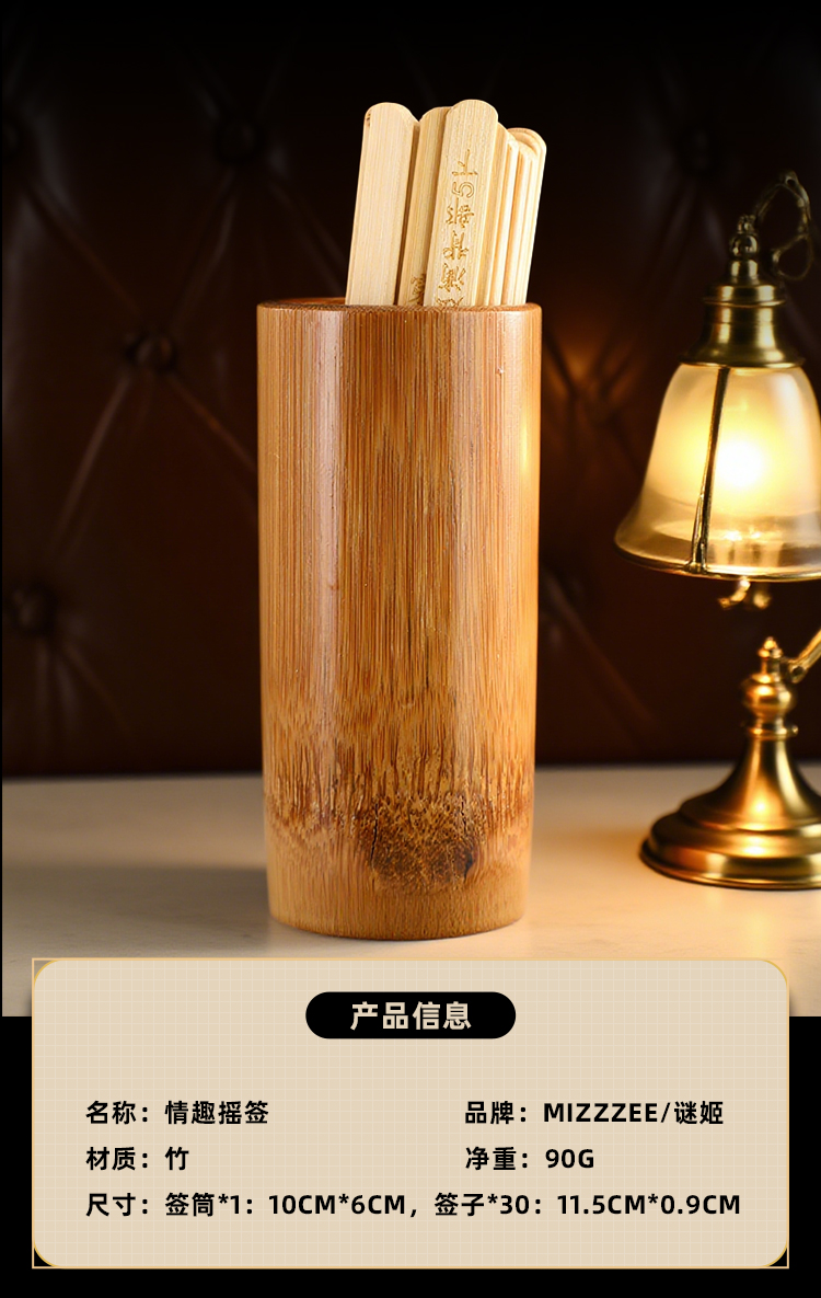 各配件及尺寸 :签筒:10cm*6cm 签子*30:11.5cm*0.9cm