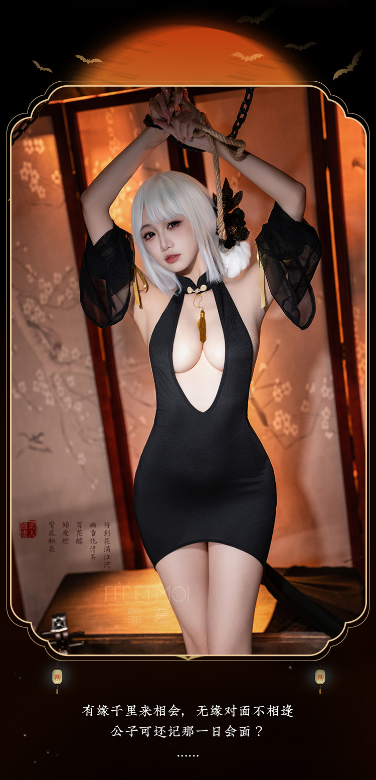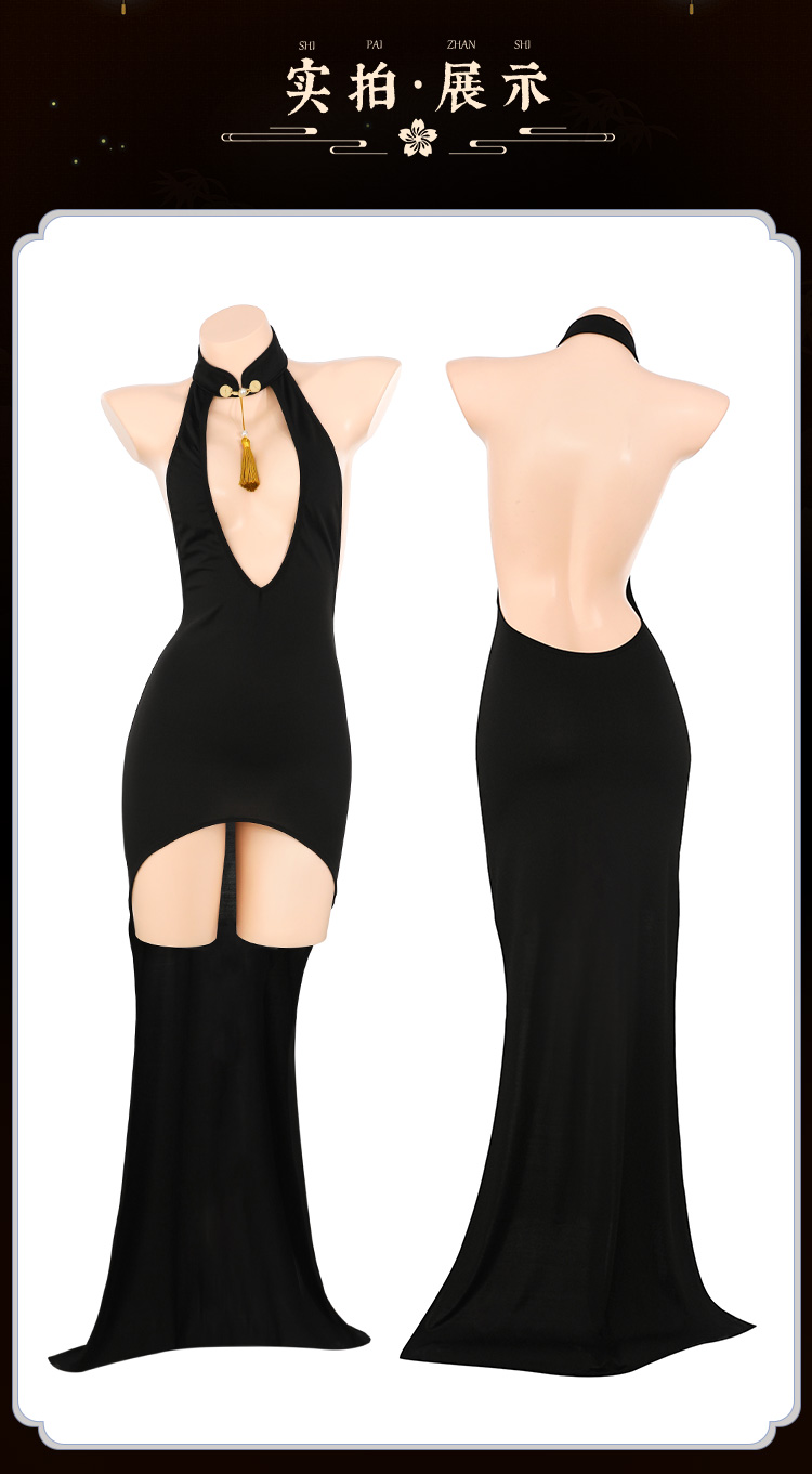 【情趣内衣】霏慕 尤物魅骨深v露背旗袍裙ZY115
