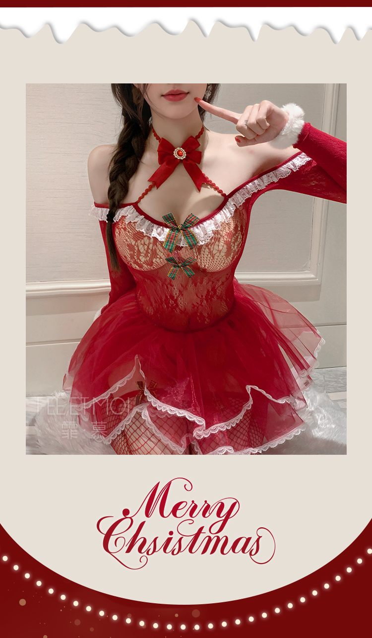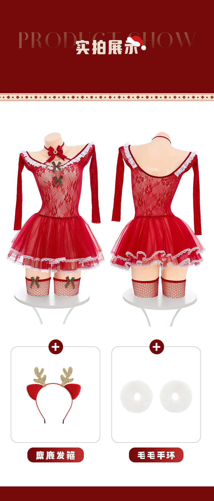 【情趣内衣】霏慕 惹火透肤麋鹿网衣制服套装ZY155